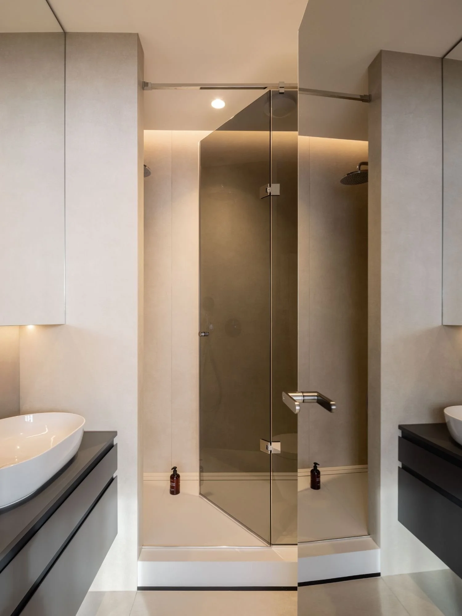 Pred samotným návrhom interiéru prešiel tento byt výraznou premenou dispozície. Jej účelom bola redukcia chodieb a otvorenie dispozície, z čoho vo výsledku profitovala hlavne denná casť, ktorá sa výrazne zväčšila. Výzvu pri navrhovaní predstavovali aj viaceré stúpačky a nosné stĺpy , ktoré prechádzali stredom priestoru a bolo potrebné ich schovať tak, aby nepôsobili rušivo.